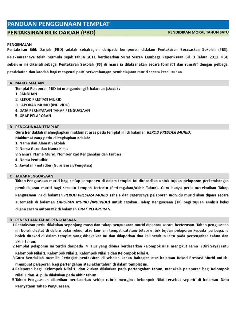 Templat pelaporan pentaksiran bilik darjah (pbd) bagi tahun 1 ini merangkumi.